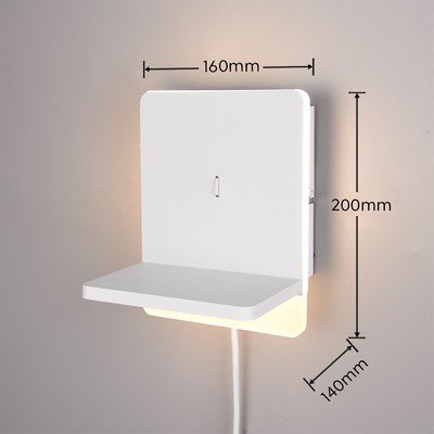 LED, USB csatlakozóval-dimmelhető-polccal, konnektorhoz csatlakoztatható, fém, fehér, magasság 20 cm
