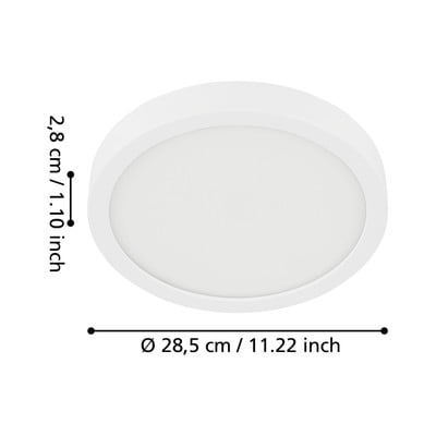 LED, műanyag búrával, fém-műanyag, fehér, ø 28,5 cm, magasság 3 cm