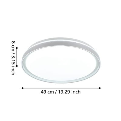 LED, műanyag búrával, fém-műanyag, fehér, ø 49 cm, magasság 8 cm