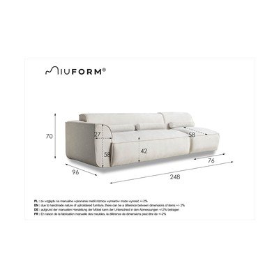 Jobb oldaliKrémszínűNégyszemélyesSzélesség 248 cmMélység 96 cmÜlésmélység 58 cm