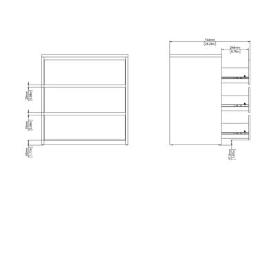 A komód modern funkcionalitást és - a három tágas fióknak köszönhetően - bőséges tárolóhelyet kínál. Egyszerű kialakításának köszönhetően hálószobába, nappaliba és előszobába is alkalmas. A letisztult vonalak és a praktikum kombinációja egy csipetnyi északi eleganciát visz a belső térbe.