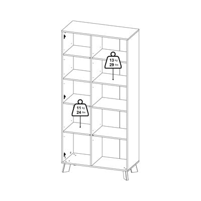 Polcos zárt részekből és egy nyitott részből áll. A fehér és a természetes fa kontrasztja friss, minimalista megjelenést eredményez.