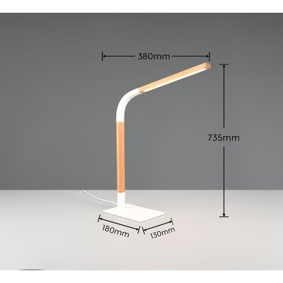 LED, hajlítható szerkezettel-dimmelhető, fa búrával, fa-fém, konnektorhoz csatlakoztatható, fehér-natúr színű, magasság 73,5 cm