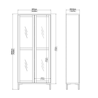 Roomers tálalószekrényTölgyfa dekorral, forgácslap, felületkezelés: papír, matt dekorral, fehér-natúr színű, szélesség 89 cm, magasság 203 cm, mélység 36 cm