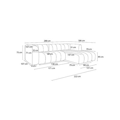 Jobb oldali-heverő résszel, fehér, négyszemélyes, szélesség 288 cm, mélység 186 cm, ülésmélység 68 cm
