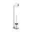 A szabadon álló acél állvány elegánsan foglalja magában a WC-papír tartót és a WC-kefét. A kefe az állvány alján található különálló tartályban van elhelyezve, feje pedig 7,5 cm átmérőjű.