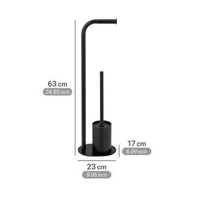 Levante wc-papír tartó állványWC-kefével, acél, fekete, 13x18 cm, magasság 63 cm