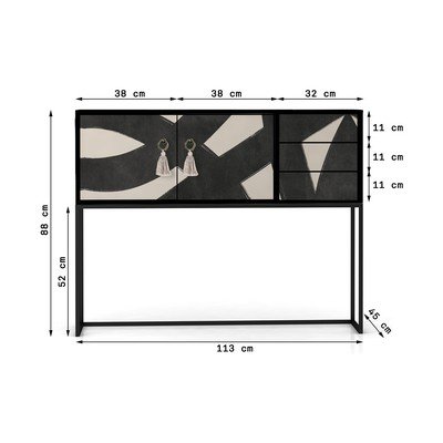 MDF, felületkezelés: lakkozás-felületkezelés: nyomott mintás, fekete-bézs, szélesség 113 cm, magasság 92 cm, mélység 30 cm