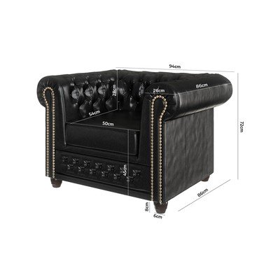 Chesterfield, bőrutánzat, fekete
