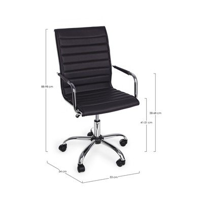 Bőrutánzat, gurulós-állítható magasságú-karfás, fekete, terhelhetőség 110 kg, ülésmagasság 51-51 cm