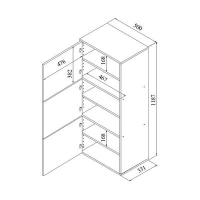 Tölgyfa dekorral, forgácslap, felületkezelés: melamin, fekete-natúr színű, szélesség 50 cm, magasság 119 cm, mélység 33 cm