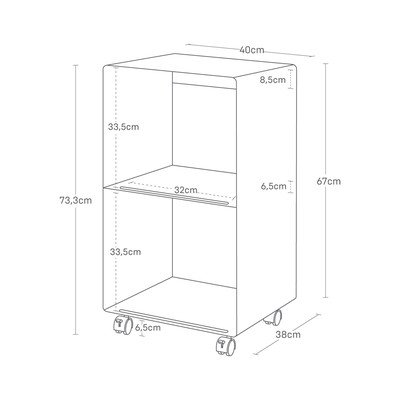 Tower gurulós polcos állványFém, fekete, szélesség 40 cm, magasság 73 cm, mélység 38 cm
