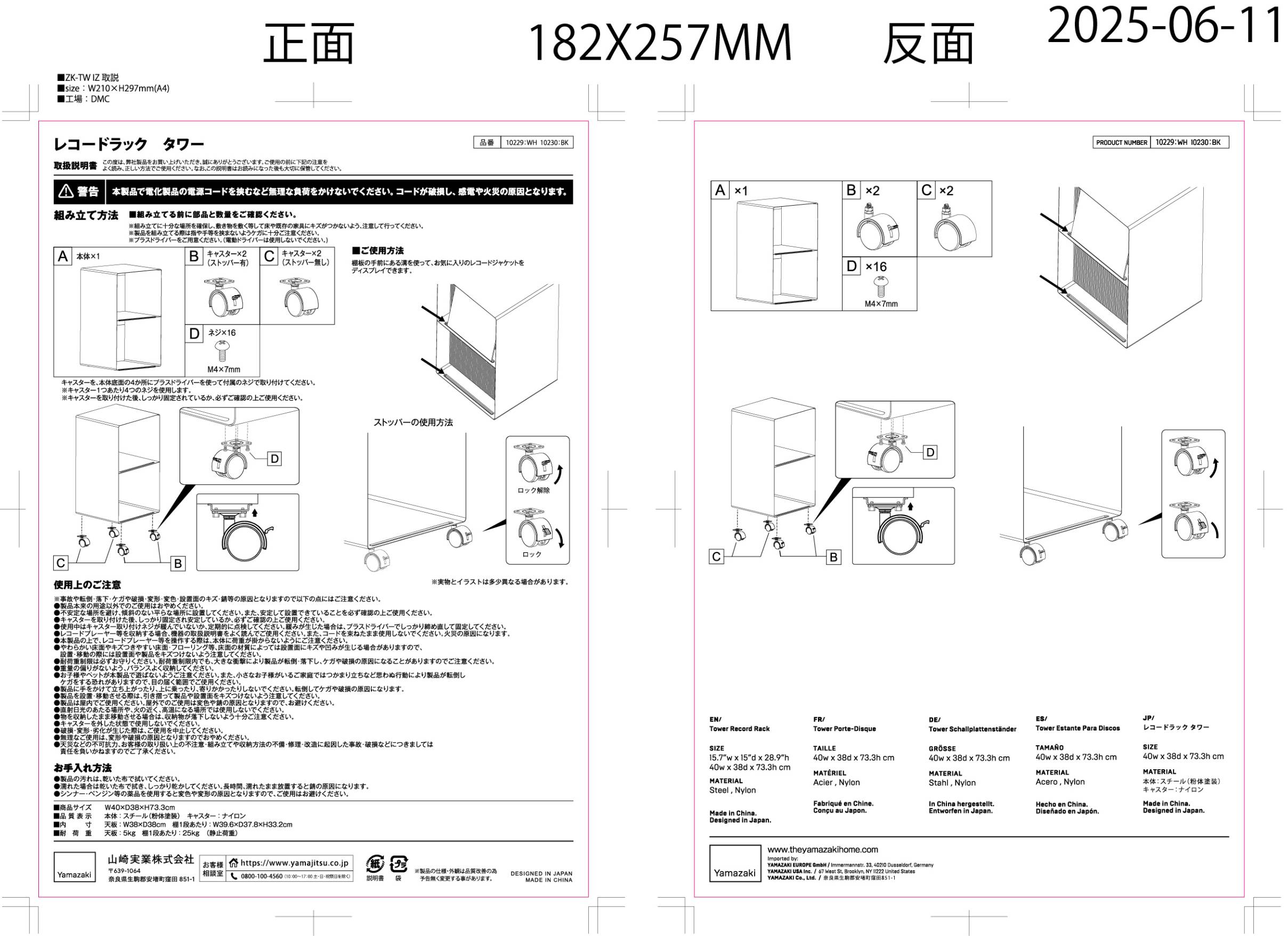 A YAMAZAKI márka Tower gurulós polcos állványa egypraktikus kiegészítő. A 40 x 38 x 73 cm (szélesség x mélység x magasság) méretű állvány bakelit lemezek rendezett tárolására alkalmas.