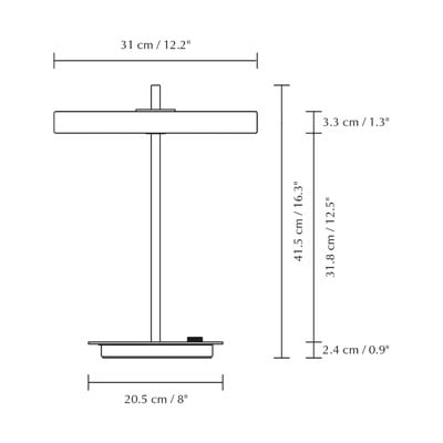 Az Asteria Table dimmelhető asztali lámpa az eleganciát és a funkcionalitást ötvözi. A fekete fém búrát egy középen futó sárgaréz elem egészíti ki. A lámpa beépített, szóróval ellátott LED panellel van ellátva, amely kellemes, lágy fényt biztosít. A lámpa beépített USB-porttal rendelkezik a telefon töltéséhez, amely akkor is használható, ha a lámpa ki van kapcsolva.