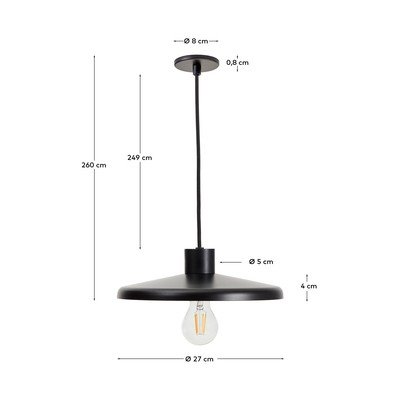 Nuvira függőlámpaFém búrával, fém, fekete, magasság 260 cm
