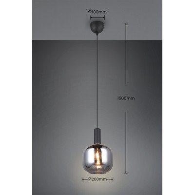 Fekete függőlámpa üveg búrával ø 20 cm Diva – Trio