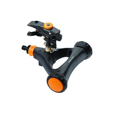 A tartós fémfej locsolási távolsága és a permet típusa könnyen beállítható a kert bármely területének pontos öntözéséhez. Fém lábakkal rögzíthető és 500 m²-es területre alkalmas.