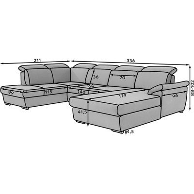 Állítható-kinyitható, jobb oldali-U alakú, fekete, öt- és többszemélyes, szélesség 336 cm