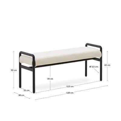 Zsenília, tömörfa-párnázott, fekete-krémszínű, szélesség 120 cm, mélység 38 cm, magasság 50 cm