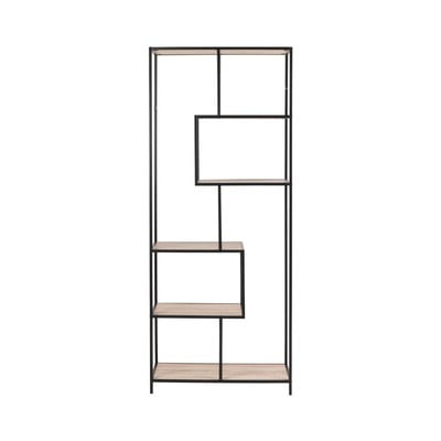Seaford könyvespolcTölgyfa dekorral, MDF, felületkezelés: papír-felületkezelés: porlakkozás, fekete-natúr színű, szélesség 77 cm, magasság 185 cm, mélység 35 cm