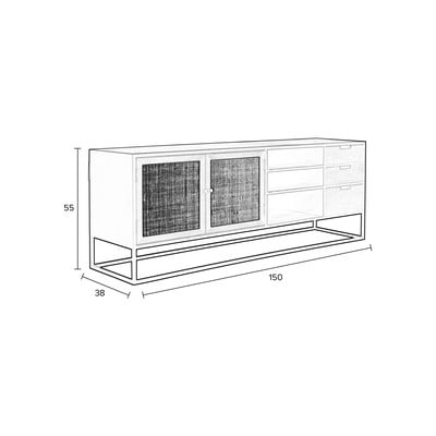 Rattan, MDF, fekete, szélesség 150 cm, magasság 55 cm, mélység 38 cm