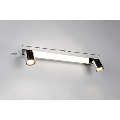 A fő lámpa oldalain két spotlámpa található, amelyek célzott megvilágítást tesznek lehetővé. Az IP44-es védettségi fokozatnak köszönhetően a lámpa optimálisan védett a fröccsenő vízzel szemben, ezért tökéletesen alkalmas nedves környezetbe.