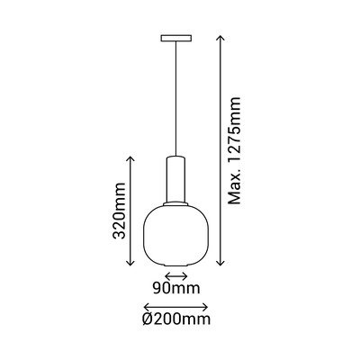 Garbo függőlámpaÜveg búrával, fém, fekete, ø 20 cm, magasság 127,5 cm
