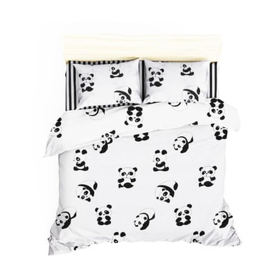 Panda ágytakaró és párnahuzat szettFranciaágyra, pamut, fehér-fekete, 200x235 cm
