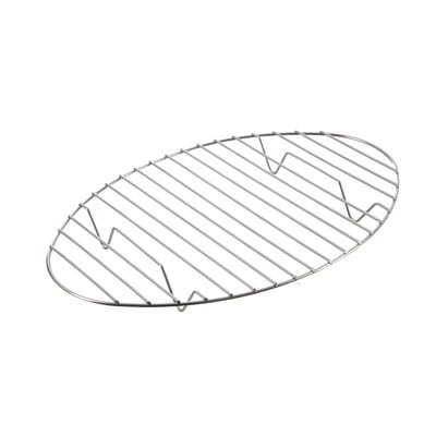Az ovális, rozsdamentes acélból készült grillrács mérete 33 x 21 x 3 cm.