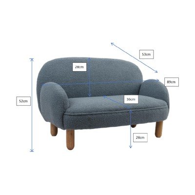 A fotel mérete 56 x 53 x 52 cm (szélesség x mélység x magasság), a kanapé pedig 89 x 53 x 52 cm-es (szélesség x mélység x magasság). Mindkét bútordarab lekerekített formáival és puha, kellemes textúrájával nyűgöz le. A stabilitást falábak biztosítják.