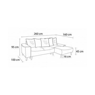 BársonyKinyitható-tárolóhelyesJobb oldaliKék-türkizHáromszemélyesSzélesség 260 cm