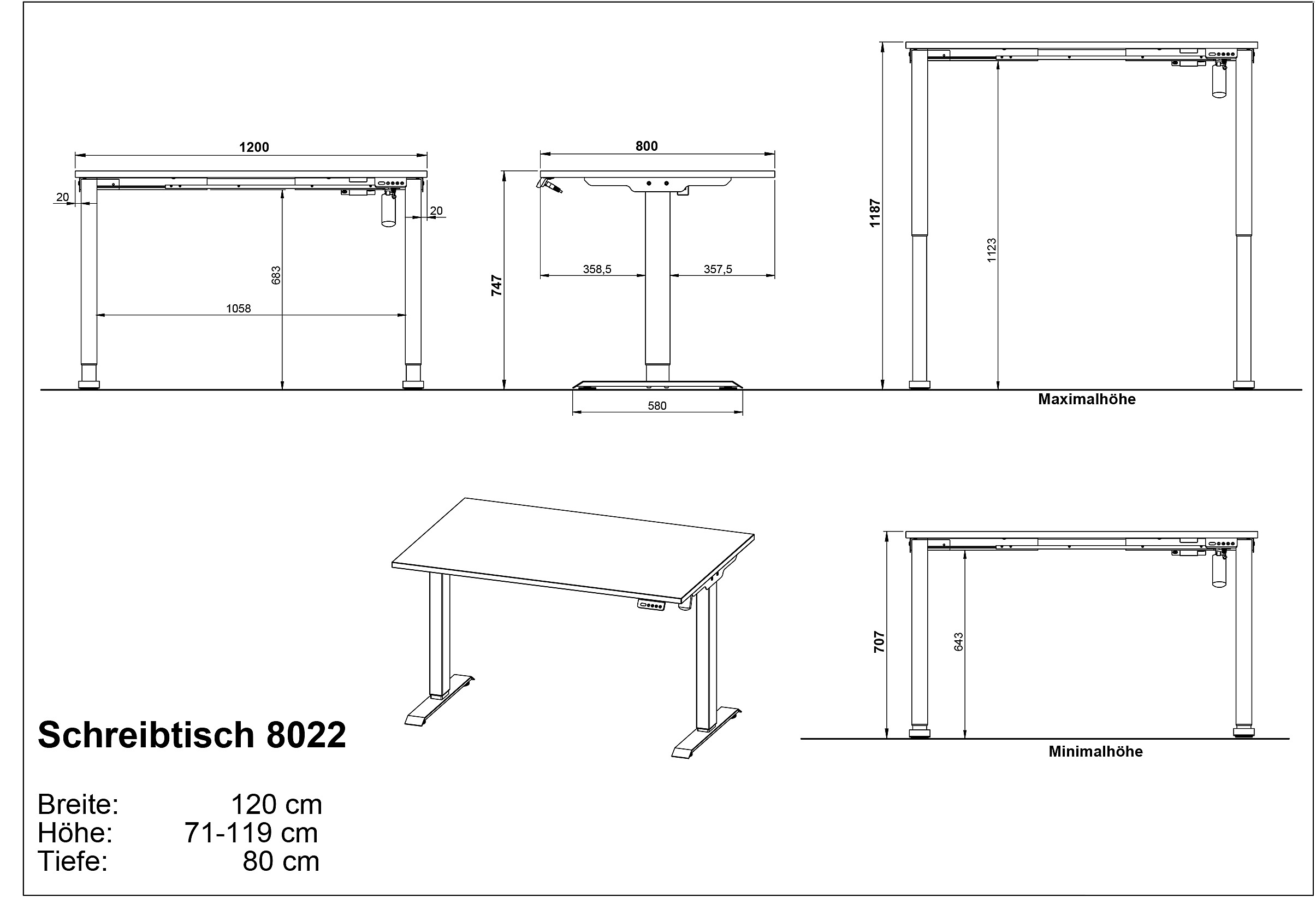 Fedezd fel a Germania márka Boras íróasztalát, amely a funkcionalitást és a modern dizájnt egyesíti! Magassága elektromosan állítható (71 és 119 cm között), és két T-lábbal rendelkezik. Kényelmet és ergonómiát nyújt a mindennapi munkavégzéshez. Felülete karcálló és tartós, így hosszú élettartamot biztosít. Környezetbarát kialakítással rendelkezik.