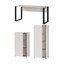A magasabb, 61 x 34 x 145 cm-es (szélesség x mélység x magasság) szekrény négy nyitott rekesszel rendelkezik. Az ajtók mögött négy rögzített polc található, amelyek dokumentumok és irodai eszközök tárolására ideálisak.