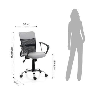 Kárpitozott, gurulós-állítható magasságú-karfás, szürke, terhelhetőség 114 kg, ülésmagasság 44-54 cm