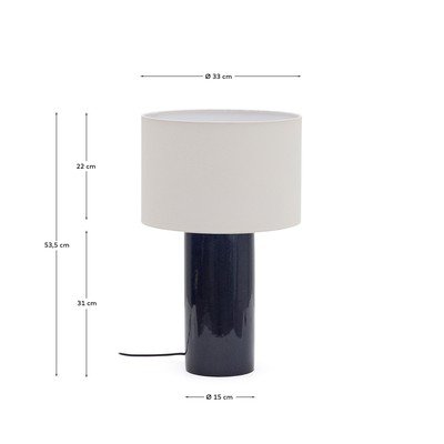 A Kave Home márka Toneric asztali lámpája kifinomultságot és exkluzivitást visz a térbe. Kerámia talpa mázas felülettel rendelkezik, amelynek textúrájában finom eltérések mutatkoznak. Ezáltal minden egyes darab egyedi és különleges.