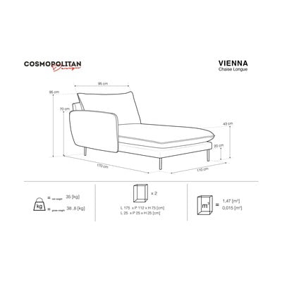 Világoskék bársony heverő (bal oldali) Vienna – Cosmopolitan Design
