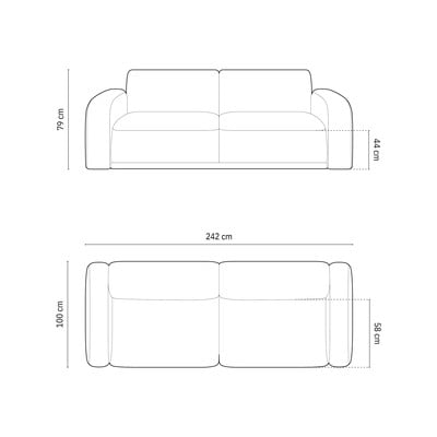 Erin kanapéBársony, kék, háromszemélyes, szélesség 242 cm
