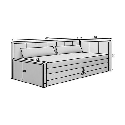 Fulgeo kanapéZsenília, kinyitható-tárolóhelyes, jobb oldali, kék-szürke, háromszemélyes, szélesség 214 cm, mélység 82 cm, ülésmélység 75 cm, jobb oldali