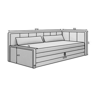 Zsenília, kinyitható-tárolóhelyes, jobb oldali, kék-szürke, háromszemélyes, szélesség 214 cm, jobb oldali