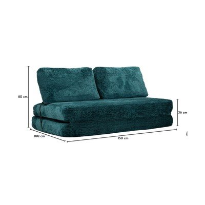 Buklé, kinyitható, kékeszöld, kétszemélyes, szélesség 150 cm, mélység 100 cm