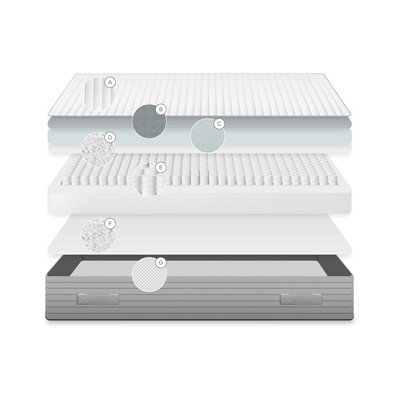 Az atermikus szálas réteg légáteresztést biztosít és szabályozza a testhőmérsékletet, ami hozzájárul a hűvös és kellemes érzethez egész éjszaka. A matrac tartalmaz egy réteg nagy sűrűségű viszkoelasztikus habot is, amely alkalmazkodik a test körvonalaihoz, személyre szabott enyhülést nyújt a nyomáspontokon és ergonomikus alátámasztást biztosít. Ez a hab ráadásul minden használat után visszanyeri eredeti alakját, ami kivételes élettartamot garantál.