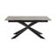 Az asztal téglalap alakú, fekete kerámia lappal. A lap alatt ügyesen elrejtettek egy hosszabbító részt, így a 168 cm hosszú asztalból 210 cm hosszú asztalt varázsolhatsz.
