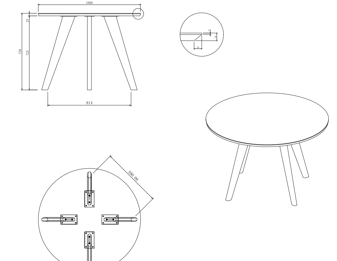 Tölgyfa dekoros asztallappal, ø 100 cm