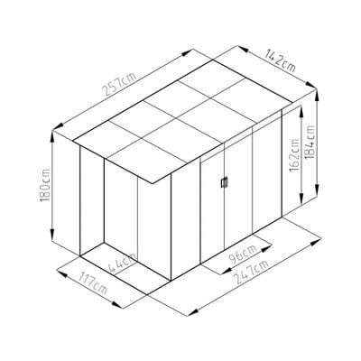 Kiváló minőségű, 0,25-0,30 mm vastagságú horganyzott lemezből és 0,5-0,8 mm vastagságú horganyzott acélvázból készül. A kényelmes hozzáférés érdekében dupla tolóajtóval rendelkezik.