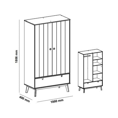 MDF, felületkezelés: festék, fehér-natúr színű, szélesség 100 cm, magasság 180 cm, mélység 49 cm