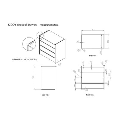A Kiddy komódot elsősorban a funkcionális designt miatt fogod szeretni, amit könnyen összeilleszthetsz a skandináv vagy modern stílusú belső terekkel. Nagy tárolóhelyet kínál. Tehetsz rá dekorációkat, plüssállatokat vagy gyermeked kedvenc könyveit is.