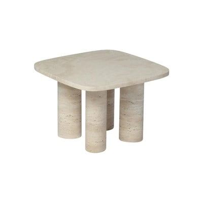 A Sebastian Herkner által tervezett minimalista asztal a travertinből készült. Ezt a követ egyedi szín, textúra és porózus felület jellemezi. Soha nem lesz két teljesen egyforma darab belőle.