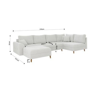 Buklé, bal oldali-U alakú, fehér, öt- és többszemélyes, szélesség 310 cm
