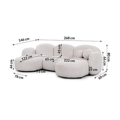 Krémszínű buklé sarokkanapé (jobb oldali-heverő résszel) Orbit – Ropez