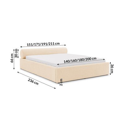 Krémszínű kárpitozott ágyneműtartós franciaágy ágyráccsal 200x200 cm Cille – Ropez